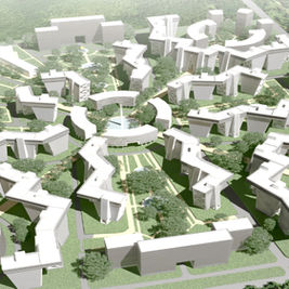 The office interior was designed with EndoChoice’s specialization in mind. EndoChoice focuses on medical devices and services related to gastrointestinal conditions. The space features a modern and professional design, incorporating a color palette of white and shades of blue that align with the company’s branding. At the reception area, visitors are greeted by a curved white desk with a transparent partition and an arched ceiling. This unique design creates an unusual environment that envelops the visitor.